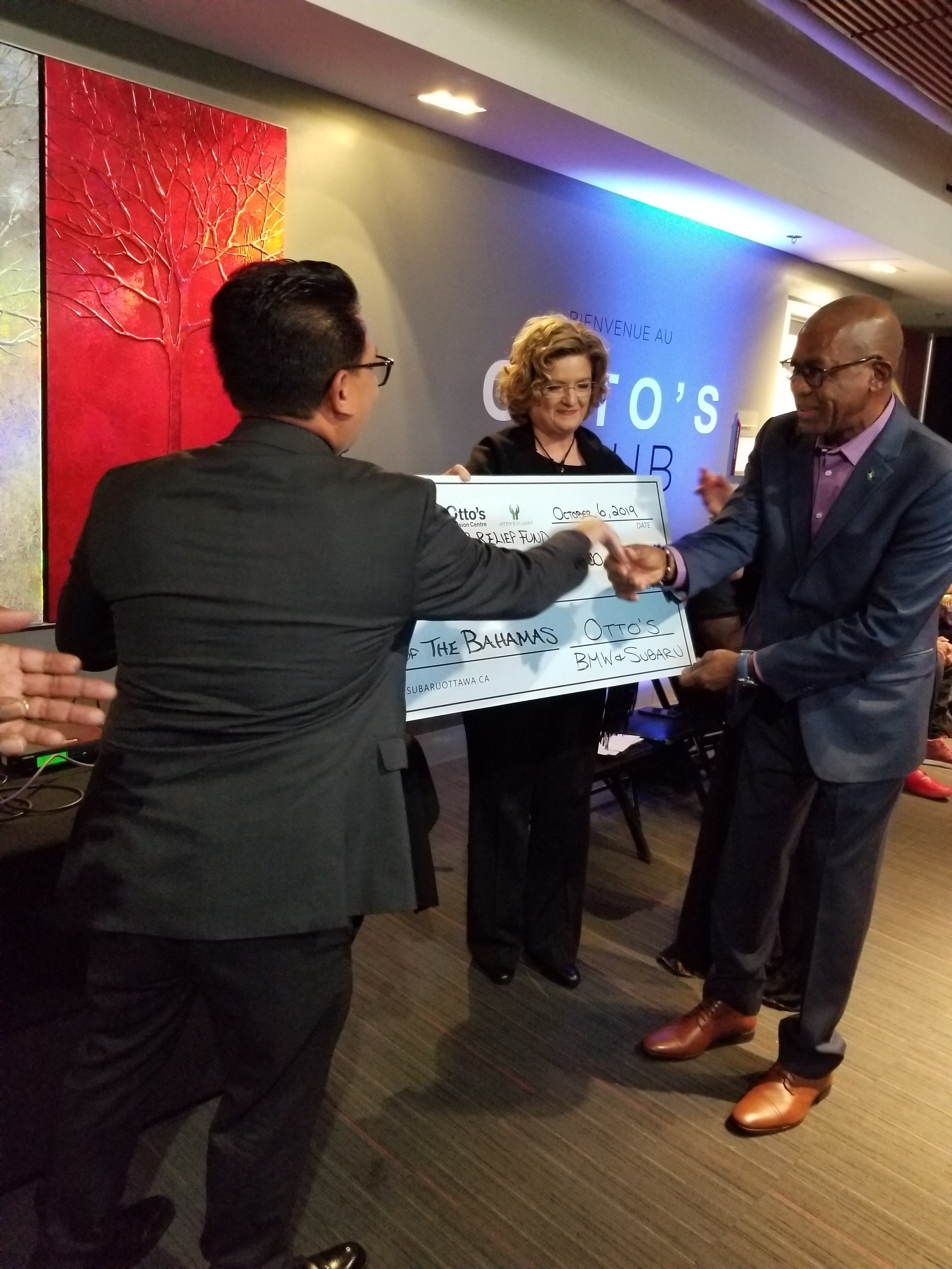 (AMTI) Angie’s Models and Talent Inc in partnership with Otto’s BMW, Subaru and Lavish Events hosted “All Love For Grand Bahama” Runway Show and Fundraising Reception for Victims of Hurricane Dorian at Otto’s Club, TD Place on Sunday October 6, 2019. In addition to funds raised at the event, a cheque in the amount of $10,000 was donated. The owners of AMTI are Lou Seymour(originally from Grand Bahama) and Angie Seymour.