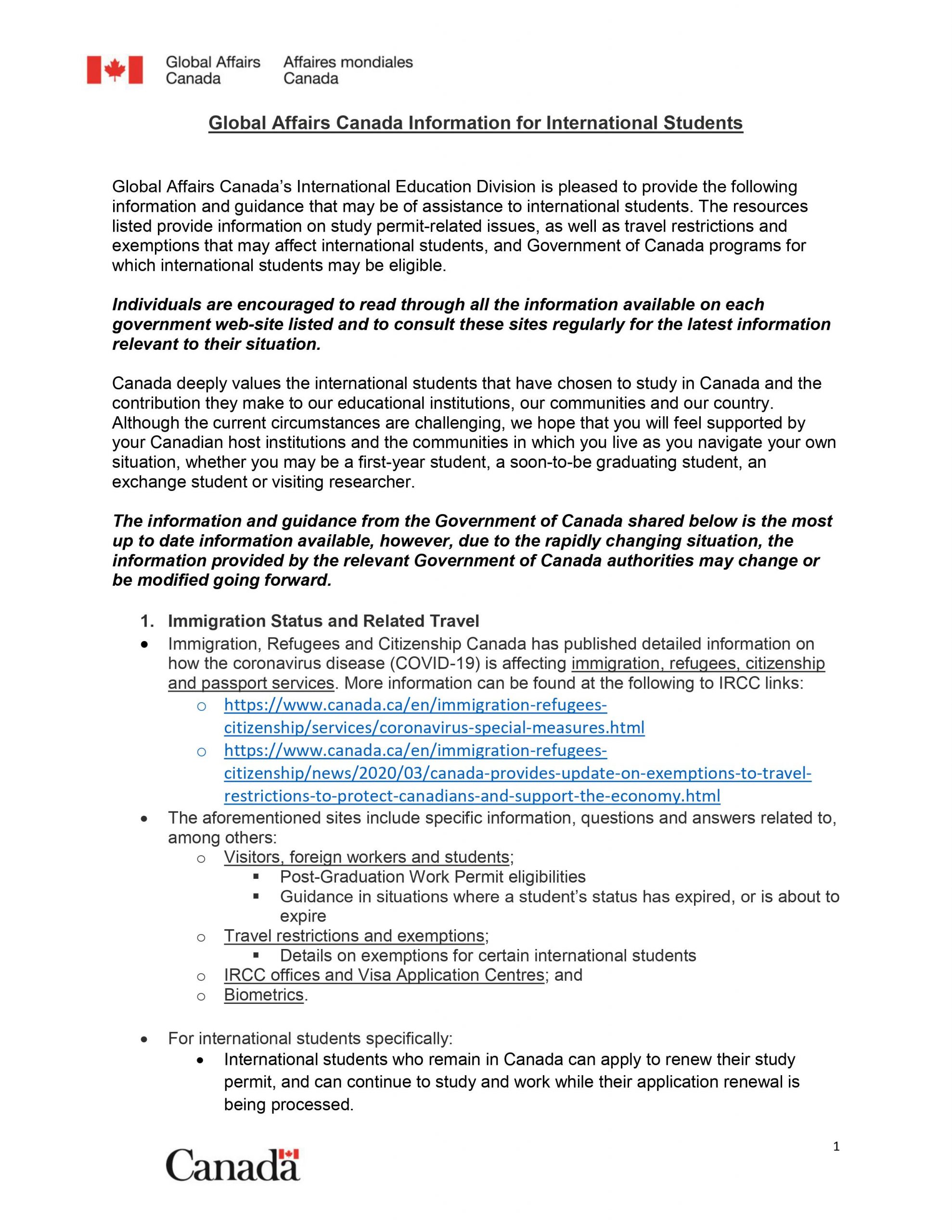 Information for International Students