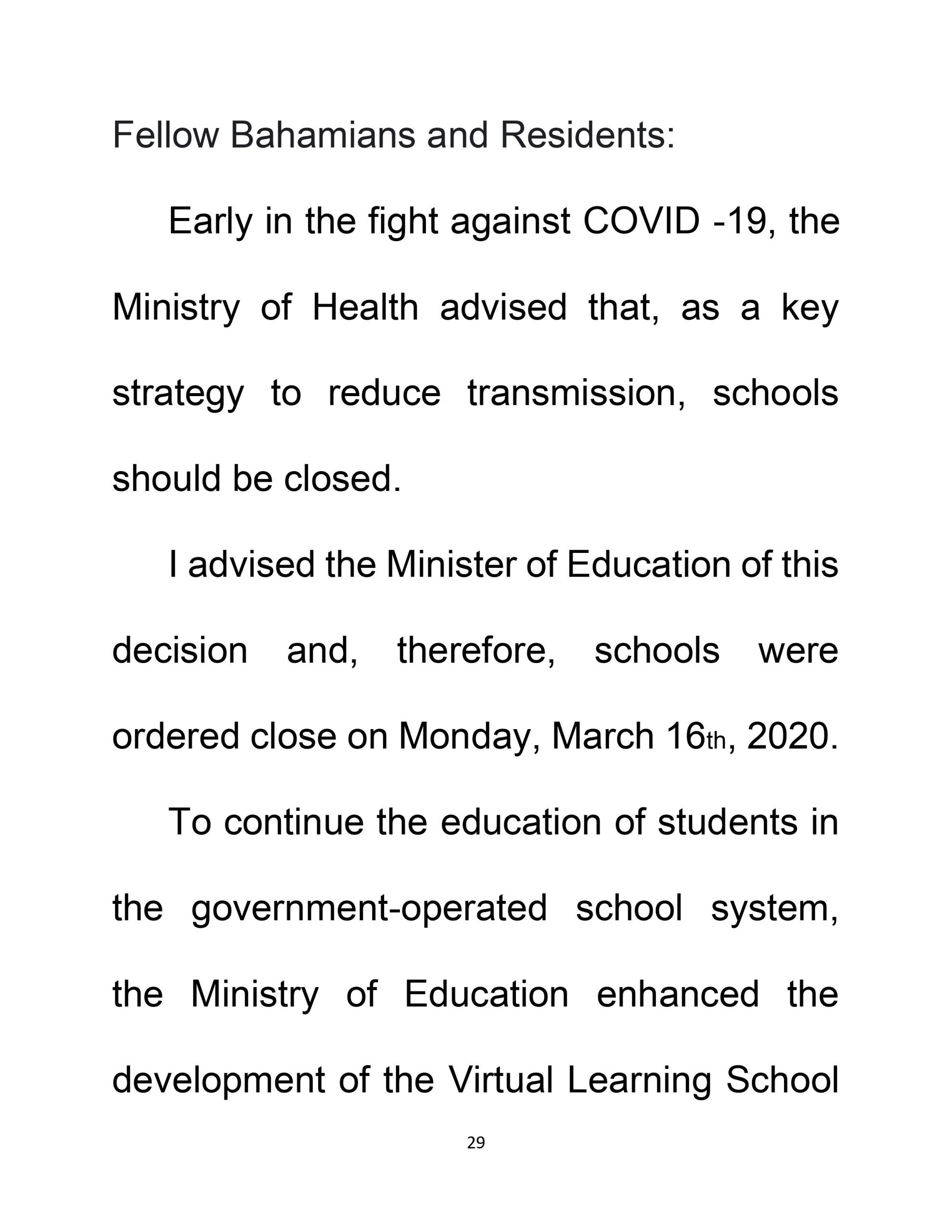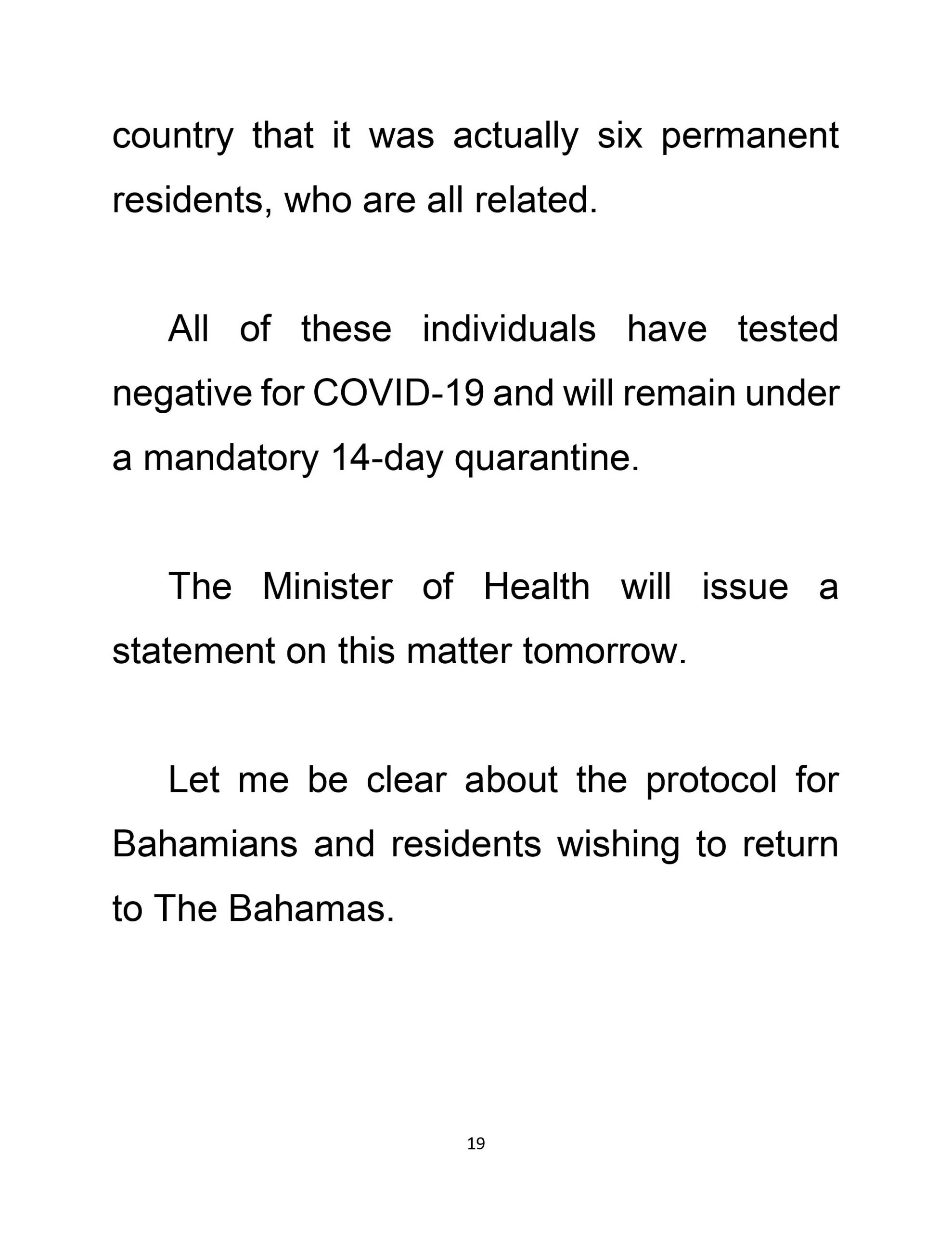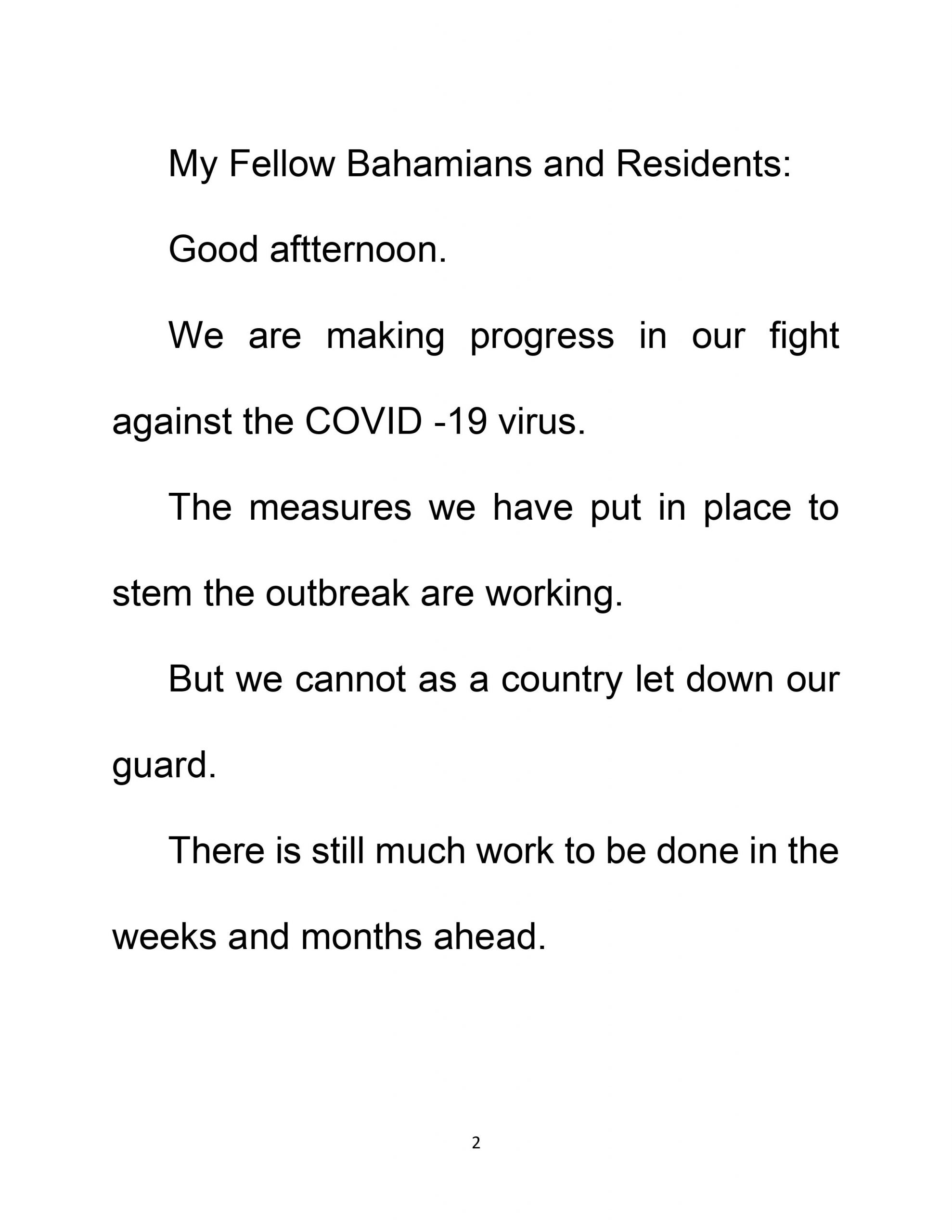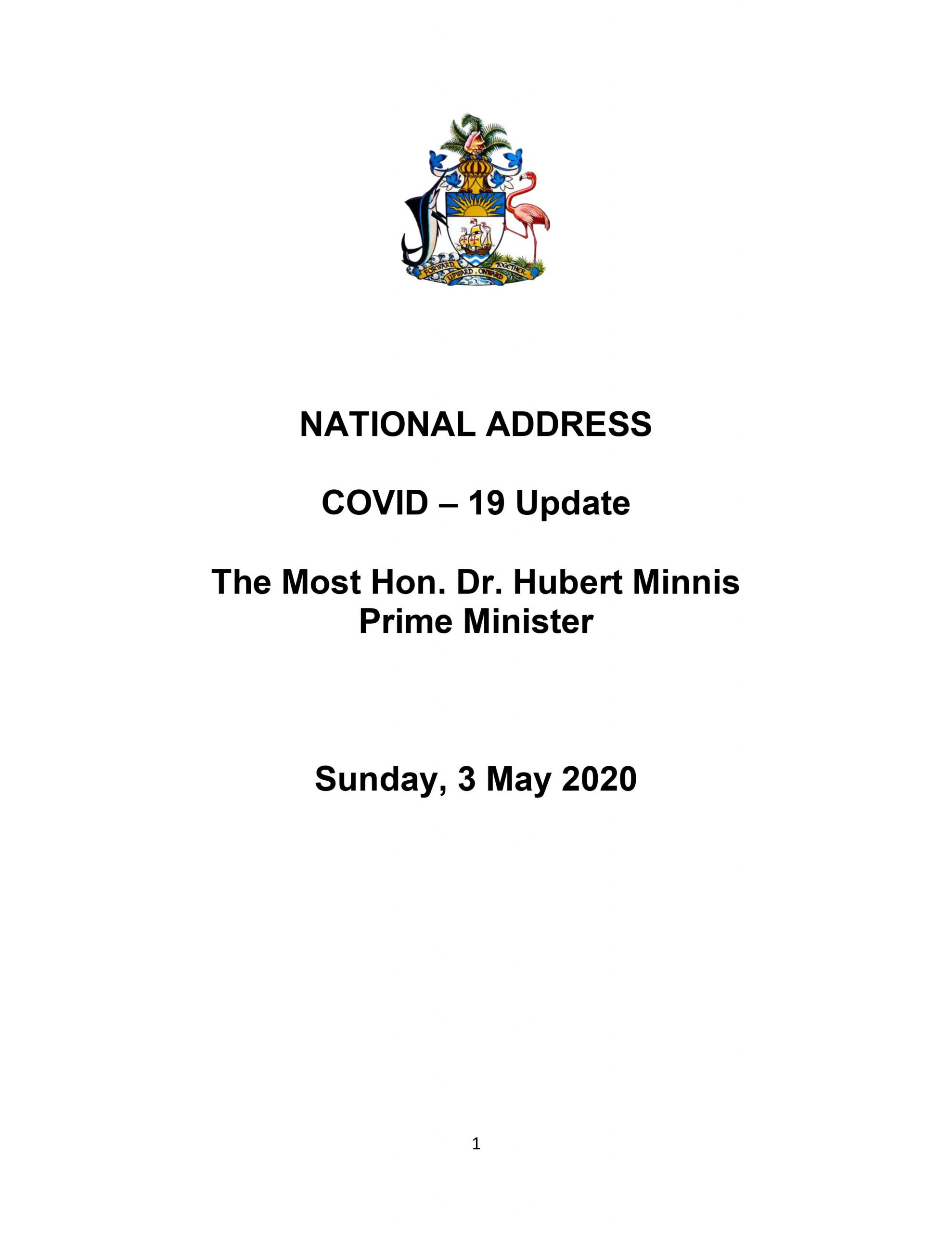 NATIONAL ADDRESS COVID – 19 Update The Most Hon. Dr. Hubert Minnis Prime Minister