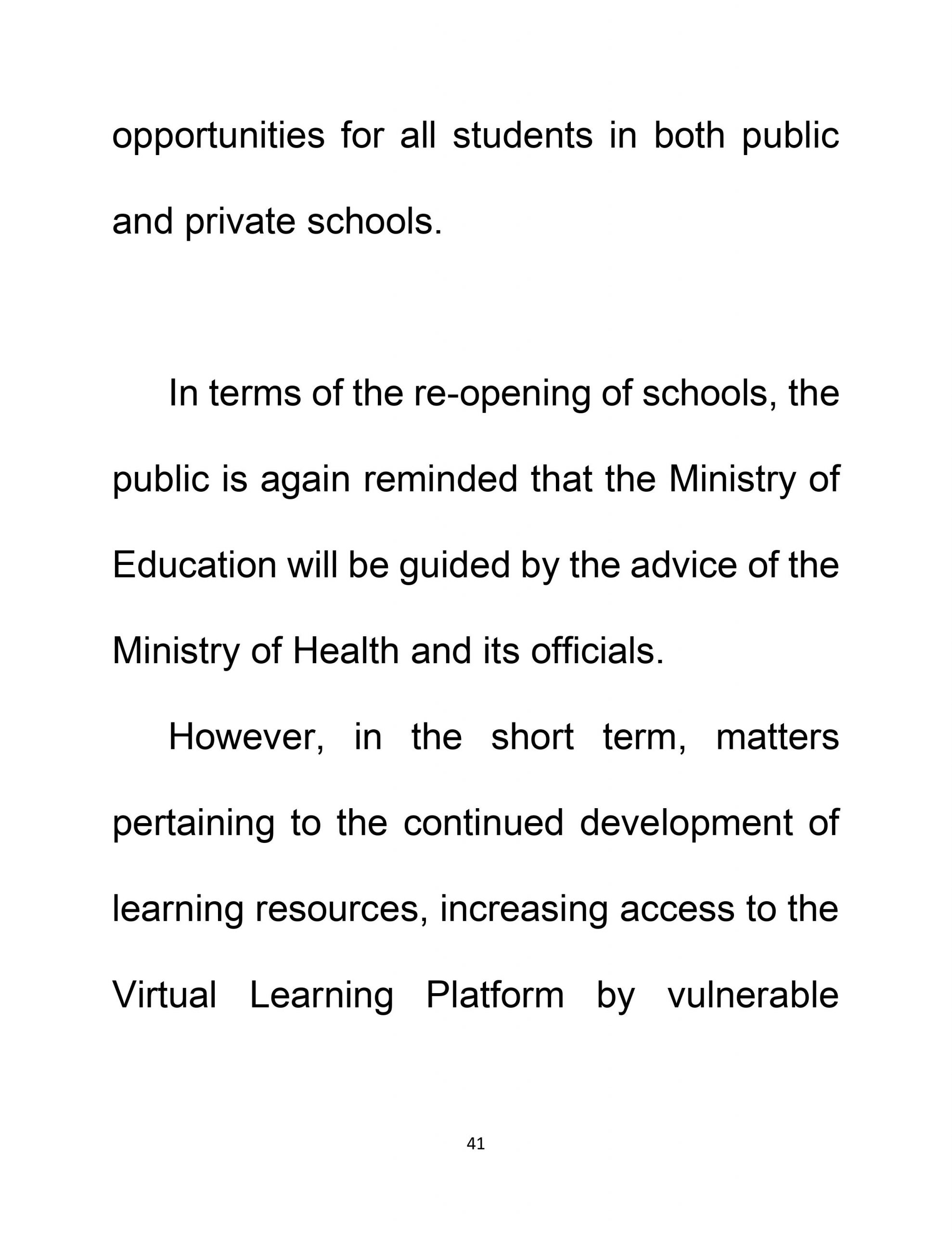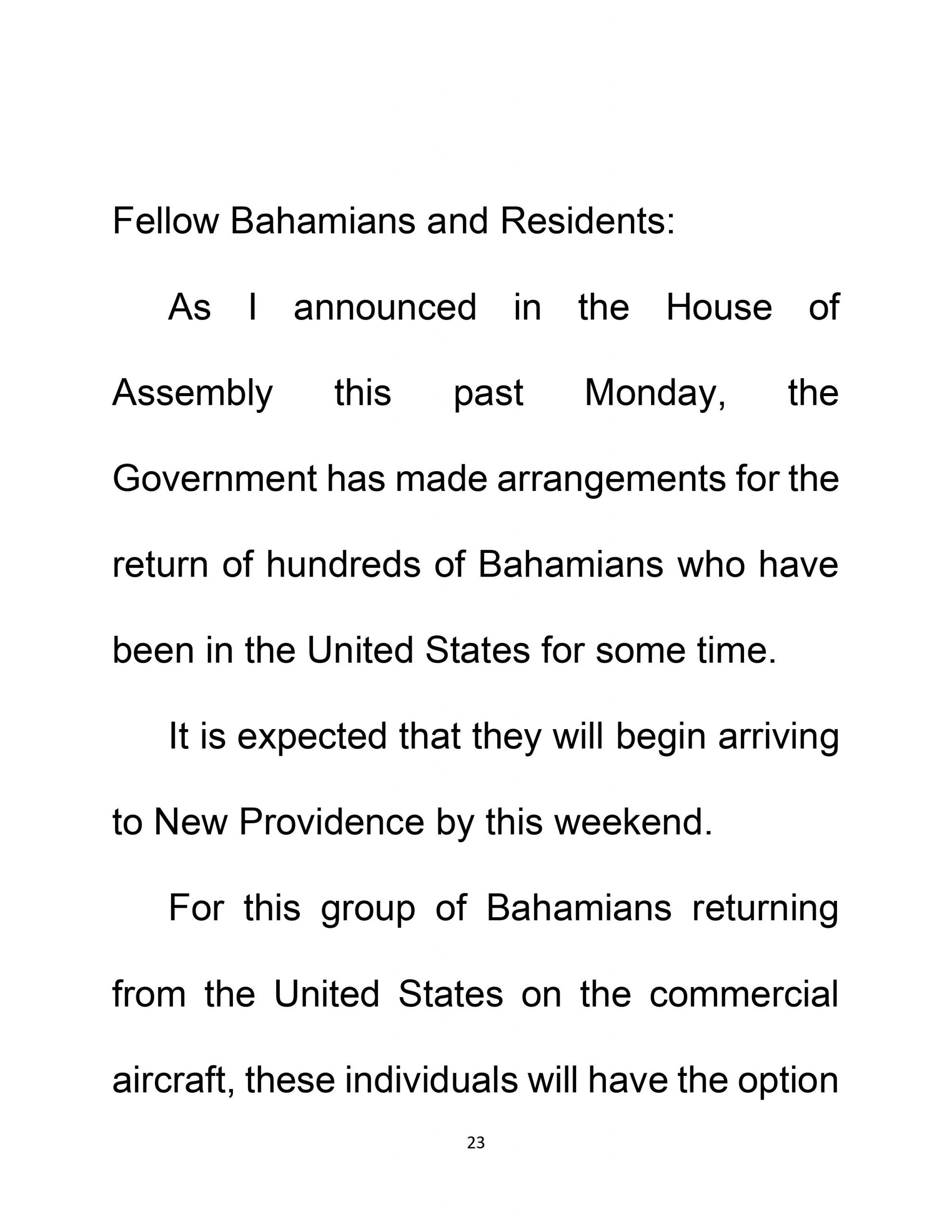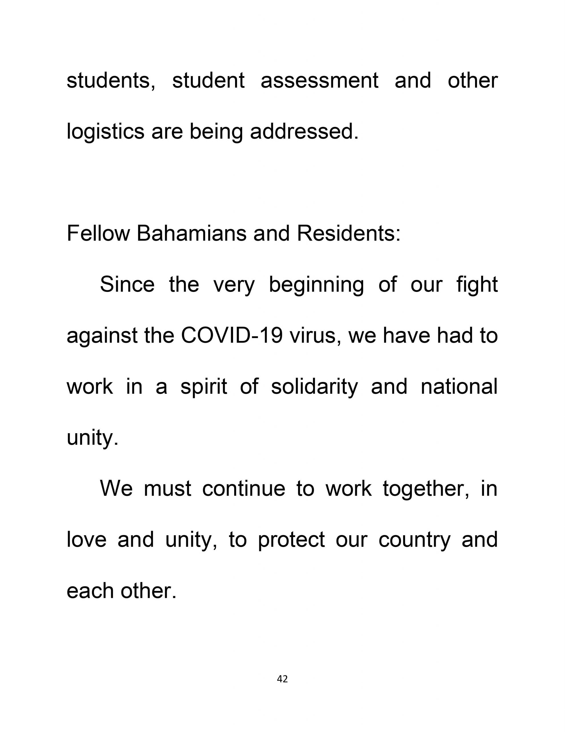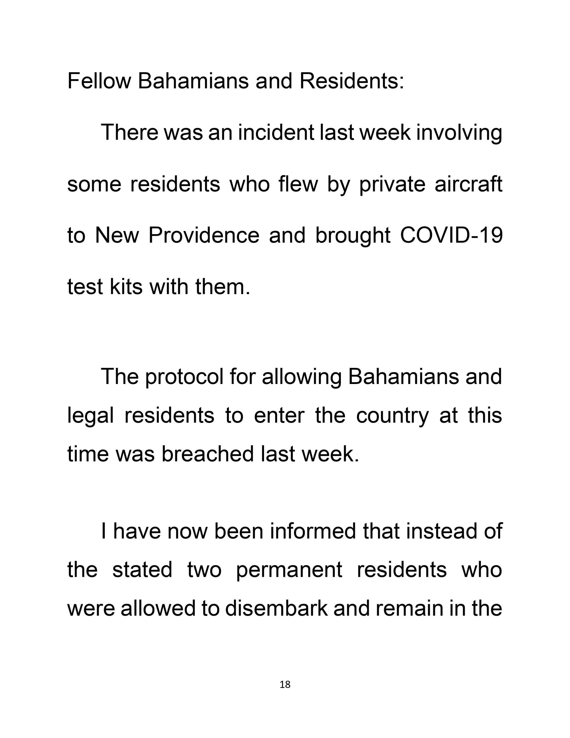 NATIONAL ADDRESS COVID – 19 Update The Most Hon. Dr. Hubert Minnis Prime Minister